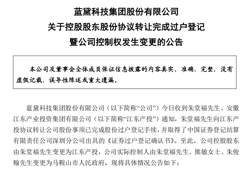 13.48亿元购入18%股权,马鞍山国资控股重庆蓝黛科技