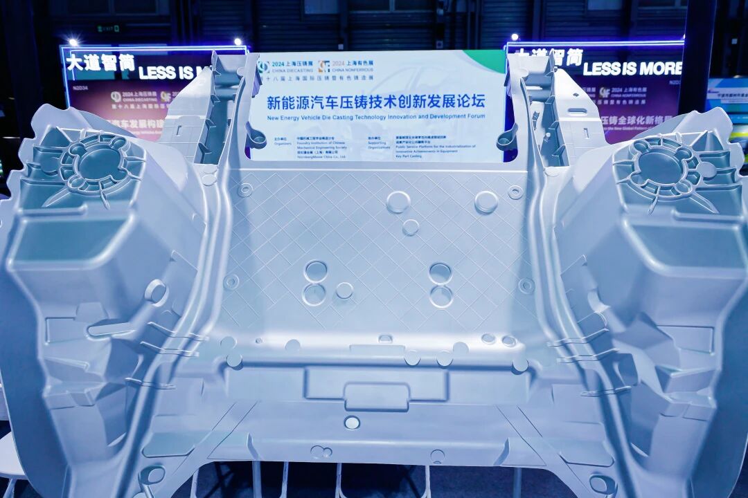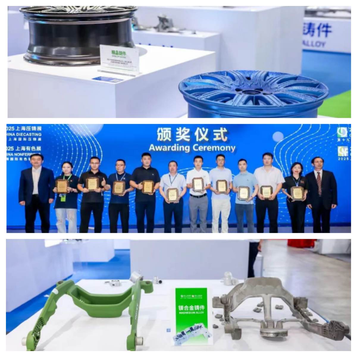 图源:上海压铸展现场 镁合金一体化后地板(一汽铸造) 镁压铸、半固态等全工艺、全产业链呈现 2025上海压铸有色展吸引585家知名展商品牌及24832名国内外专业观众交流洽谈。其中,以力劲、华孚、嘉瑞、宜安、宝武镁业、上海镁镁、JSW、伊之密、海天、富来、伯乐等为代表的镁合金产业链展商百余家,实现高压压铸、半固态成形等镁合金铸造主流工艺,以及从原材料到设备、模具、铸件厂的产业链全涵盖,成为现场关注度最高的焦点之一。