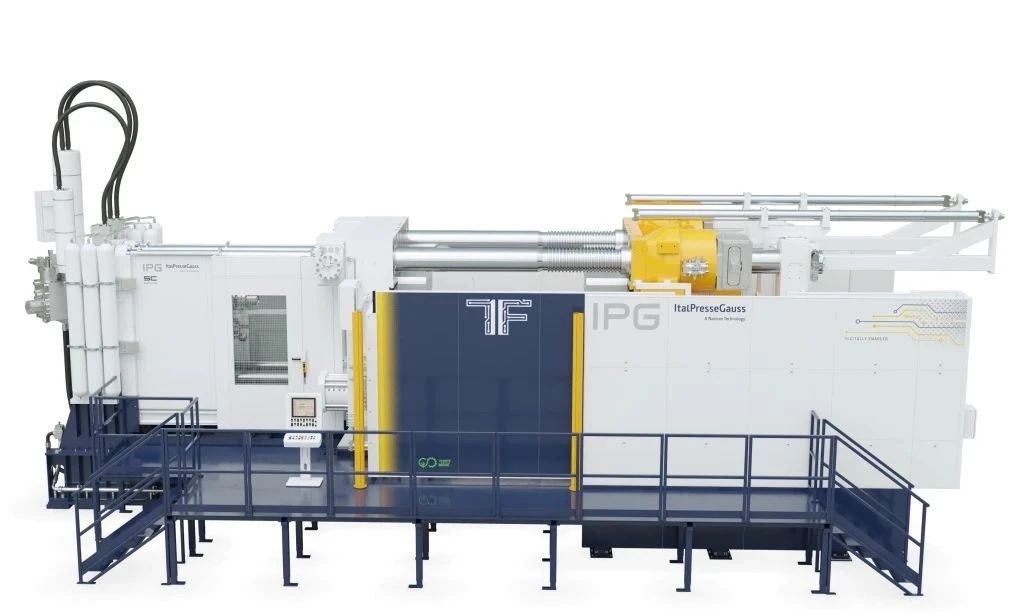 一体化压铸单元内熔炼解决方案 该一体化压铸单元内熔炼解决方案支持用户在单元内进行熔炼、保温、定量以及除气、除渣或调整合金成分,无需大量铝液的转运过程,占地面积小,并且具备高灵活度、模块化选项、个性化定制等特点。 TFs无曲拐智能系列超大型压铸机 张南舟表示:“半个多世纪以来,意特佩雷斯高斯一直为轻金属铸造行业提供高品质设备和灵活解决方案。我们的高压压铸、重力浇铸和低压铸造设备以及自动化单元遍布全球。我们致力于满足客户的特定需求,不断创新,并提供适应性强的技术和支持服务,无缝优化铸铝工艺,这就是意特佩雷斯高斯的与众不同之处。智能、高度灵活和模块化配置的TFs无曲拐智能系列高压压铸机,合模力高达11000吨,非常适合铸造更大的零部件,帮助客户更好地面向未来。”