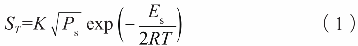式中:ST为某温度下氢在铝液中的溶解度;Ps为铝液表面的氢气分压;Es为氢的摩尔溶解热;T为铝液温度;R为气体常数;K为实验常数。 氢原子在熔体降温过程中不断析出,但气泡体积并不是由零逐渐增大的,而是存在最小形核半径。当局部氢分压大于最小形核压力时,宏观氢气孔才开始出现并逐渐长大: