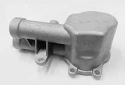 图11 充型过程和凝固过程的温度场 可以看出,在充型时,两股金属液汇入一起,未出现台阶面的情况,并且在液面升到上侧的薄壁部分时,金属液平稳上升,未出现紊流、飞溅的现象。在凝固时,除了较远处先进行凝固之外,由于冷却系统的加入,出现缩孔的部位在周围较薄的部位开始凝固之前已经开始发生凝固,在周围薄壁部分失去补缩能力后。同时,由于加工余量的设置,加工孔位置厚度增加,导致该处凝固缓慢,对周围进行补缩。同时,由于左侧浇注位置的改变,在凝固到底部两个圆筒时,浇注口距离图7F处预测会产生缩孔位置较近,可以有效的进行补缩。 工艺优化成形后铸件的缩松、缩孔分布如图12所示,可以看出,由于工艺方案的改进,底部的缩松、缩孔全部转移到了孔加工的部位,其他部位的缩松、缩孔也由于冷却系统的增加得到了消除。 为进一步验证优化后的变速器操纵盒工艺方案的可行性,根据上述优化方案对产品进行试制,试制产品如图13所示,经检验,产品整体质量较好,内外表面无裂纹、缩松、缩孔等缺陷,并且将零件剖开,观察易产生缩松、缩孔的图7中的F和G处,也无缺陷产生,与上述模拟结果相吻合,说明浇注系统和冷却系统的优化设计较为合理。