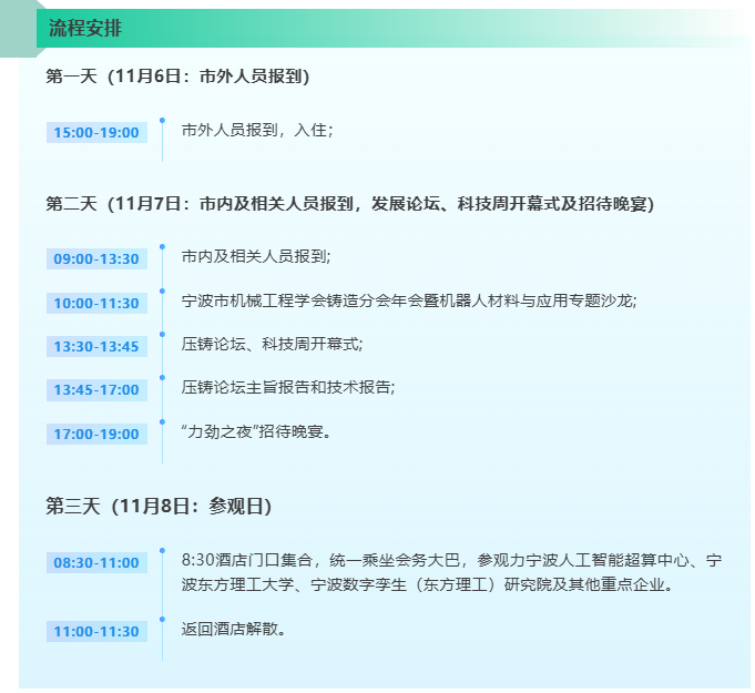 近日,宁波市铸造行业协会发布通知,2025年11月6日至8日,2025年度宁波压铸产业论坛(压铸年会)暨北仑模具科技周活动,将于宁波影秀城丽筠酒店举办。此次活动旨在进一步推动宁波压铸工业高质量发展,整合行业资源,激发创新活力。