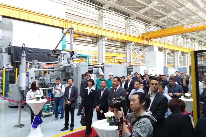 协会领导、客户代表、专业媒体记者与布勒人共同见证中心开幕 10月24日上午,来自布勒压铸中国的主要客户以及行业媒体欢聚一堂,共同庆祝布勒中国压铸技术中心开幕。开幕式由布勒压铸中国及亚太区总监卢敏先生主持,布勒压铸全球总监JonathanAbbis先生以及布勒中国及亚太区CEO Dieter Voegtli先生发言,十点十八分,随着卢敏先生的宣布,1400吨布勒CARAT压铸机在万众瞩目中正式打响第一模,也同时向行业宣告布勒中国压铸技术中心正式开幕。接下来是生动精彩的舞狮表演,由JonathanAbbis先生以及Dieter Voegtli先生为雄狮点睛,也同时为布勒压铸及全球压铸行业的蒸蒸日上和兴旺发展带来美好的寓意。
