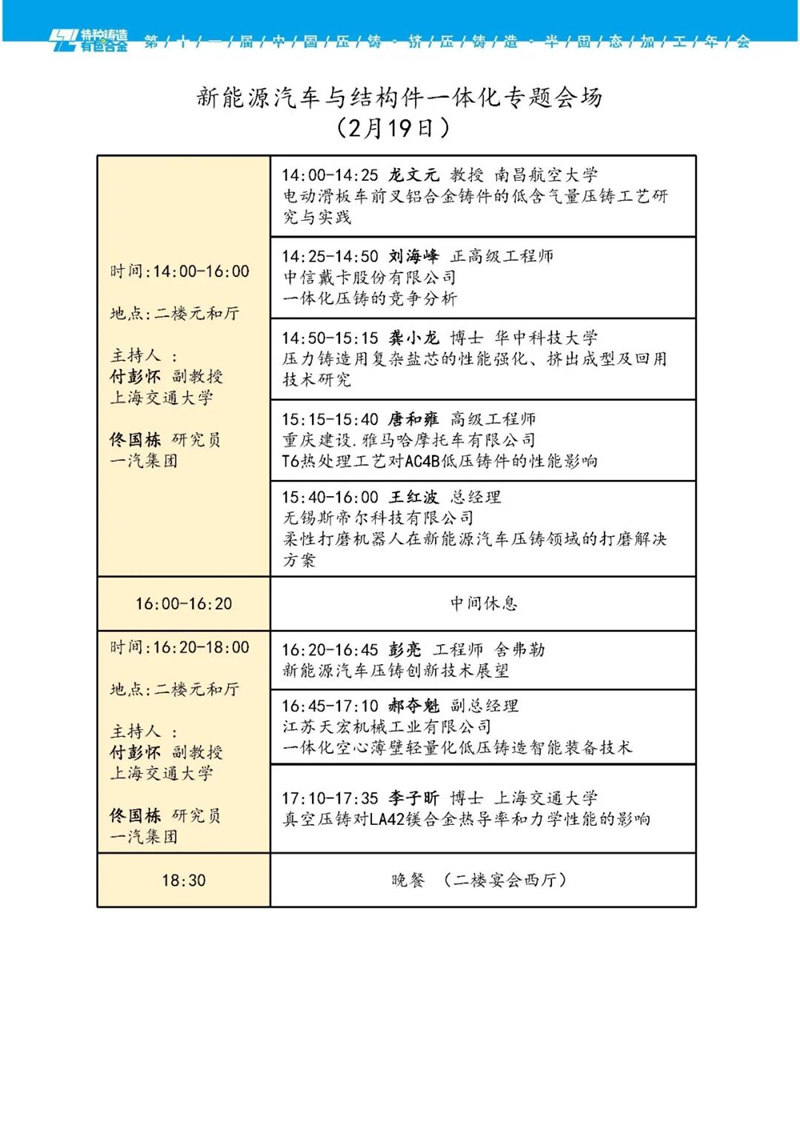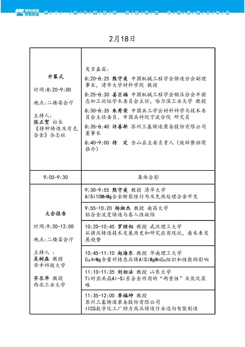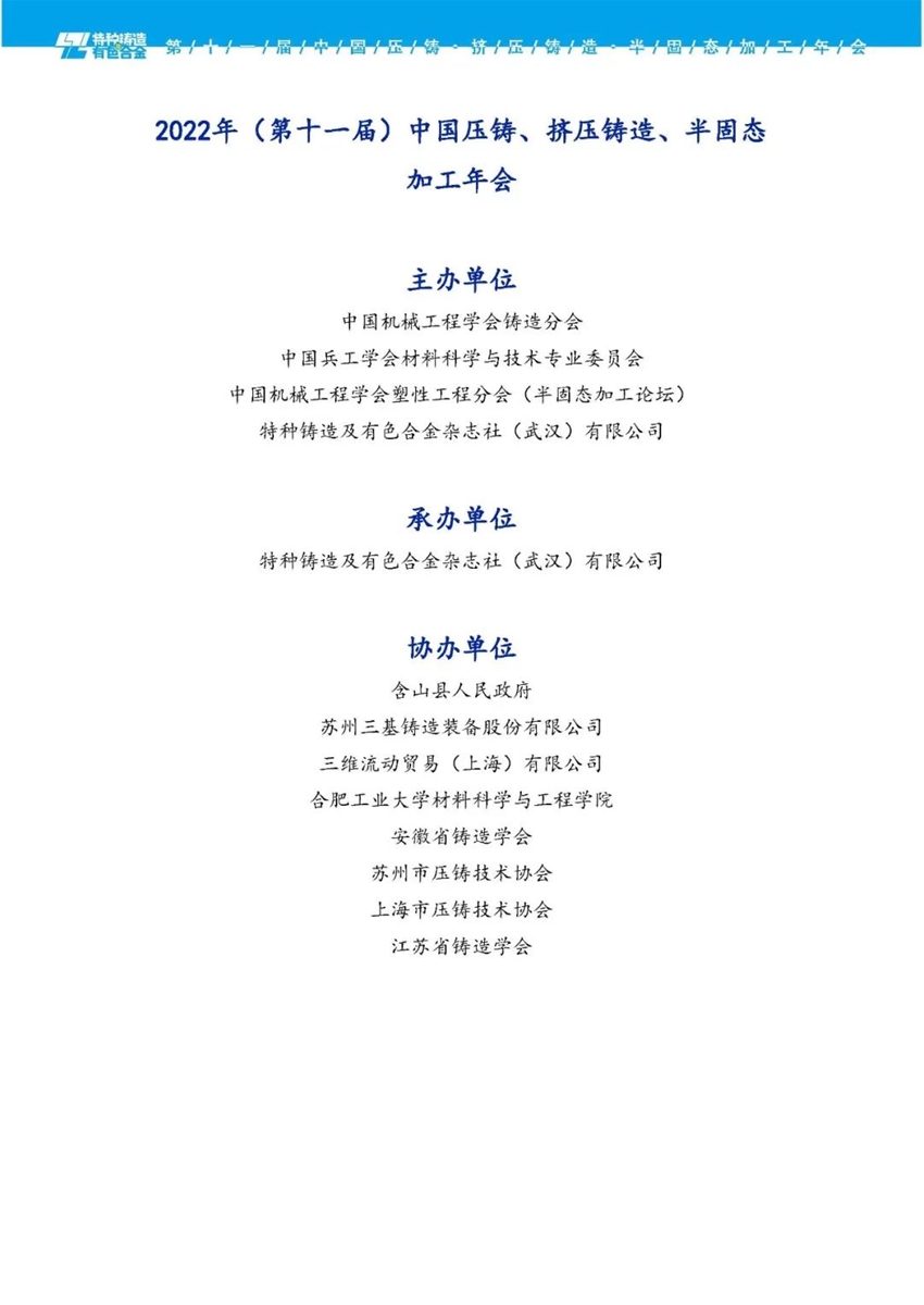 第十一届中国压铸、挤压铸造、半固态加工年会日程