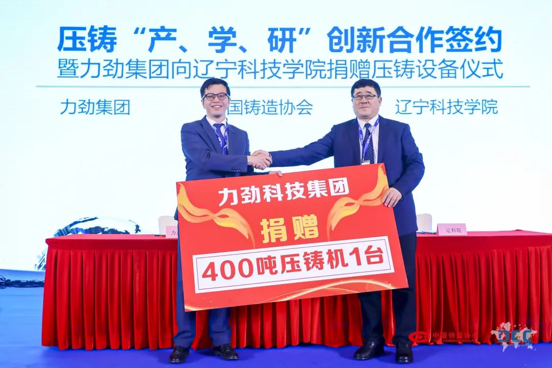 随后,中国铸造协会、力劲集团、辽宁科技学院共同举行“产、学、研”创新合作签约暨力劲集团向辽宁科技学院捐赠压铸设备仪式。通过整合压铸领域优质资源,以达到在教学、实训、创新、交流等方面开展起密切的合作,三方将发挥各自优势,互利合作,构建“协、企、校”共赢的共同体,从根本上促进产学研深度融合,为中国压铸领域培养高素质技术技能人才,推动中国压铸领域实现高质量和可持续发展。
