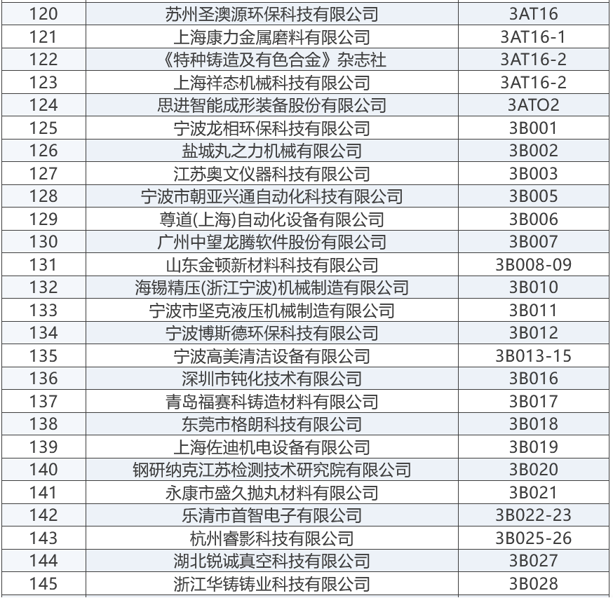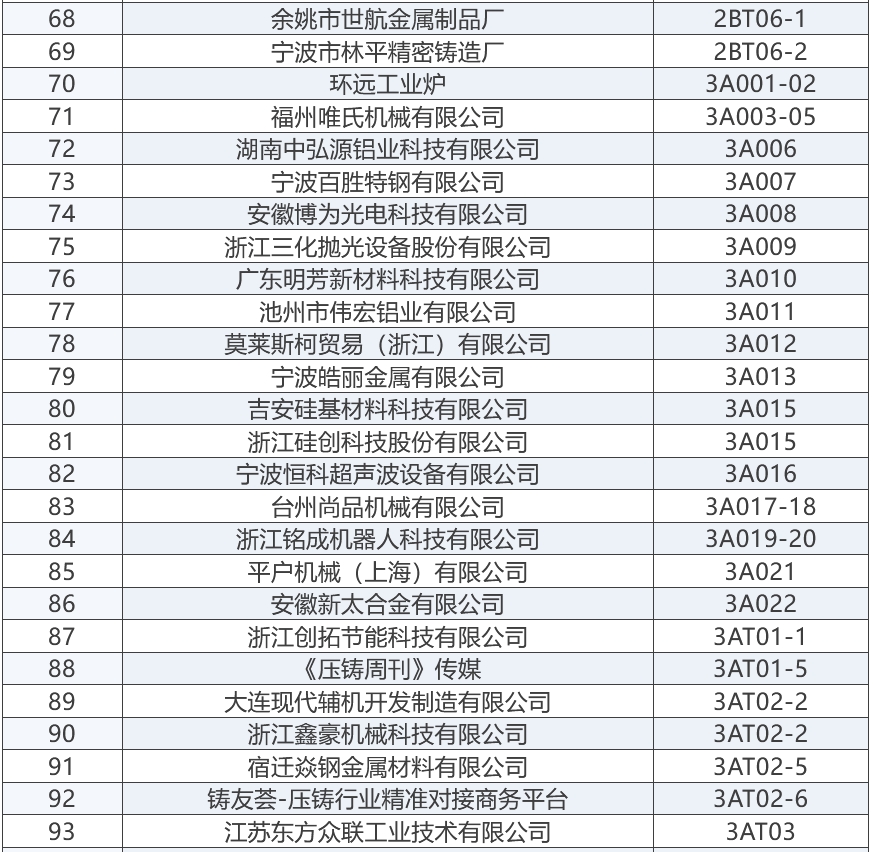上届展会部分参展商 “2025宁波国际铸造锻造及压铸工业展览会”将成为浙江地区铸造与压铸行业的一大盛事,为铸造、锻造及压铸行业的交流与合作搭建起一座重要的桥梁。与此同时,宁波国际金属冶金工业展览会,将与“2025宁波国际铸造及压铸展”同期举办,可形成资源共享、相得益彰之势。 展商名录