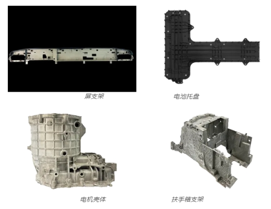 双压射电池车身一体化整体底盘压铸件 据了解,双压射电池车身一体化整体底盘压铸件的重量约为180Kg, 尺寸为:2900mm×2500mm×600mm 该压铸件采用免热处理铝合金材料,由13000T双压射压铸机一体压铸而成。 该超大型压铸件将在会议的铸件展区展出。同时,宜安科技的多款镁合金压铸件也将一同展出,包括:(汽车)显示屏支架、电机壳体、扶手箱支架、电池托盘以及笔记本电脑壳体等。