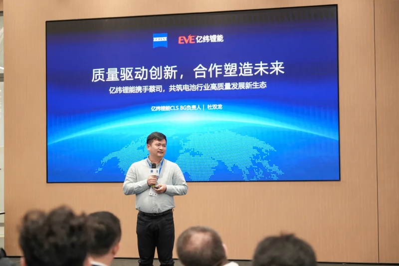▲平颉 蔡司工业质量解决方案中国区总裁 此外,在上午的主会场活动中,亿纬锂能CLS总经理杜双龙博士围绕动力电池技术演进与质量挑战发表主题演讲,从客户角度出发生动阐述了与蔡司携手共筑电池行业高质量发展新生态,实现质量提升与效率突破的实战经验,为与会者提供了来自产业一线的重要洞察。