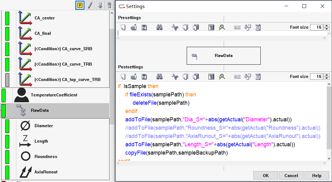 上图展示了一部分程序界面,如果我们没有PCM模块,可否实现根据零件的尺寸设置测量策略的功能呢?答案是可以的! 软件中默认提供了6种通用策略,他们根据不同的探头类型分为功能性检查和过程能力分析类检测,它们只能调用,不可编辑。