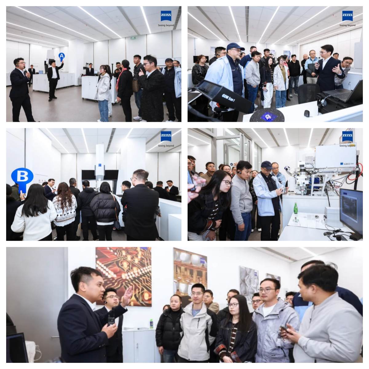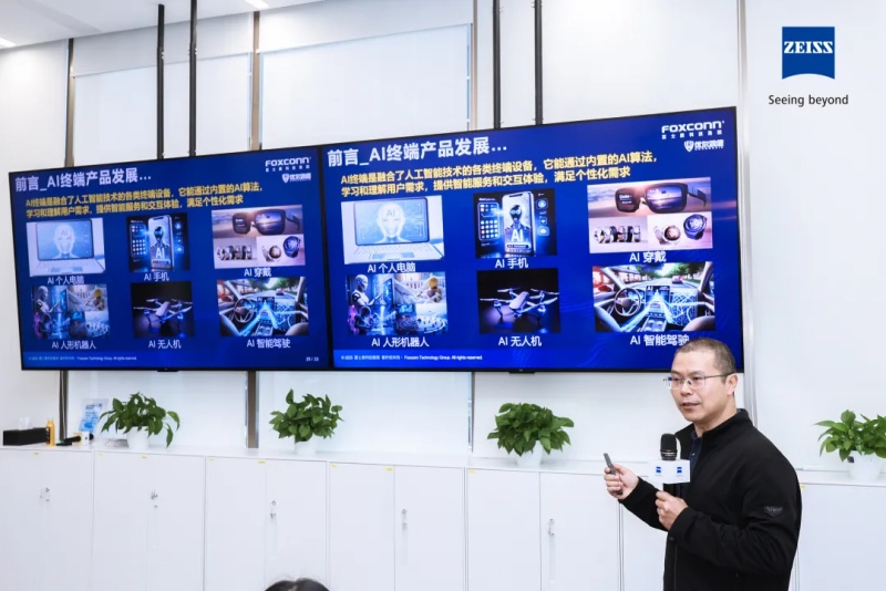 我们将 AI 作为核心转型战略,以算力基础设施为基础,拓展 AI 服务器制造与算力应用落地能力,依托全球生产基地与垂直整合优势,支撑大模型训练与应用部署需求。 在智能制造层面,融合 AI 质检技术与高精度检测能力,构建全流程智能检测体系,强化缺陷识别、尺寸校验与工艺优化,以数据驱动提升生产效率与良率,夯实 AI 智造核心竞争力。 在消费端与产业端,我们持续布局智能穿戴、机器人、智能驾驶等多元应用场景,通过技术协同与生态共建深化场景落地,双方的长期合作为全链条产品的可靠性与规模化发展提供坚实支撑。 技术实景展示:从方案到应用 论坛议程紧密围绕AI智能终端产业链的失效分析等检测需求展开,在技术分享环节,蔡司技术专家分享了AI智能终端的质量解决方案,涵盖AI眼镜、AI手表、AI耳机、AI手机,以及AI服务器等最新应用检测需求。优尔鸿信及相关供应链企业则介绍了AI智能终端领域的前瞻布局经验和供应链中关键产品的品控实践与挑战。 在蔡司东莞质量卓越中心的参观环节中,参会者实地观摩了在电子领域不同应用场景下的质量检测实操演示。通过蔡司FIB-SEM(聚焦离子束扫描电镜)、金相显微镜(Axio Scope5)、三坐标测量机(ZEISS PRISMO系列、ZEISS SPECTRUM系列、ZEISS CONTURA系列)、工业CT(ZEISS METROTOM系列)、以及三维扫描仪(ZEISS ATOS Q)等设备的动态运行,以及软硬件模块化灵活配置的生动演绎,直观了解在面对AI眼镜、智能手表、耳机等可穿戴设备的精密微型化的极致挑战下,蔡司尖端技术为微型传感器、紧凑光学镜头及复杂内部结构提供无损检测和精密测量的关键保障,以创新质量方案驱动新一代AI硬件的研发与智造升级。