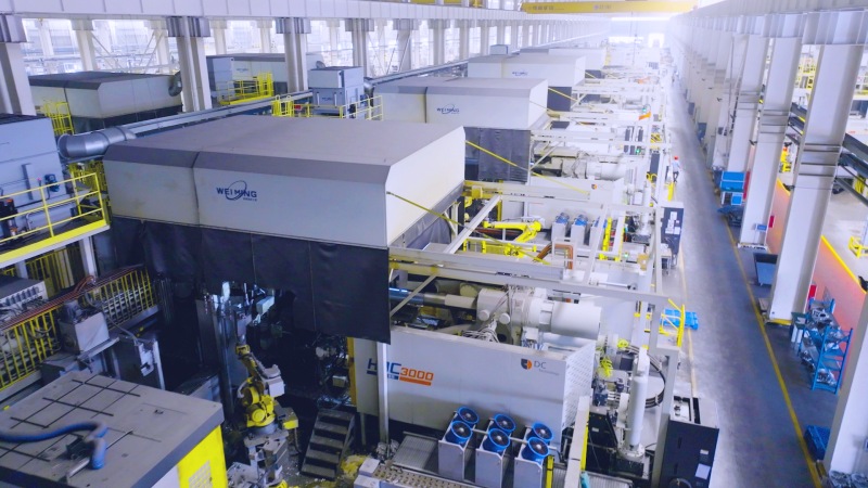 目前,浙江万里扬新材料有限公司已投入使用18台海天智胜金属压铸机,这些设备主要用于变速箱箱体的生产。为满足不同车型的需求,压铸机吨位进行了灵活配置:重卡箱体采用4500T大吨位压铸机,而阀体等小件则使用800T机型。未来,该公司还将持续扩大产能,最终规划建设60条压铸岛生产线,并实现制造执行系统(MES)全线覆盖与数据云端共享。