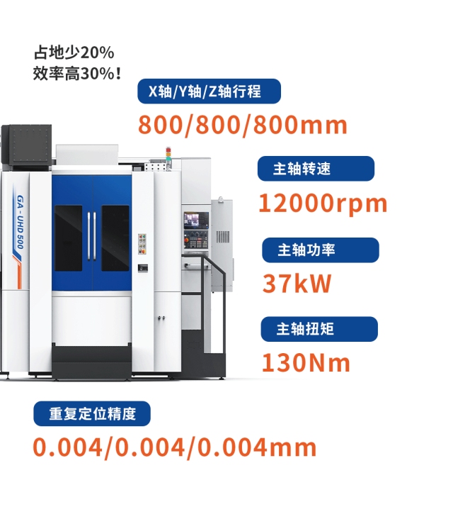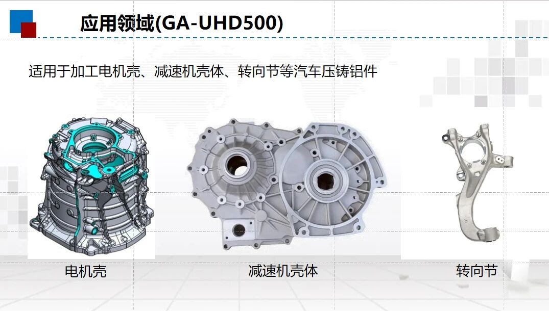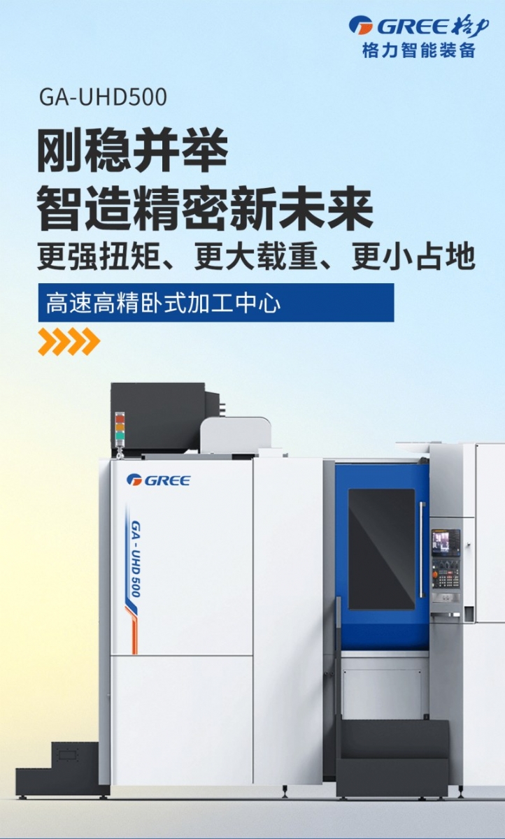 高速高精卧式加工中心 格力高速高精卧式加工中心 GA-UHD500,兼具更强扭矩、更大载重与更小占地的优势,相较同类设备占地减少 20%、加工效率提升 30%,适用于精密加工电机壳、减速机壳体、转向节等汽车压铸零部件。