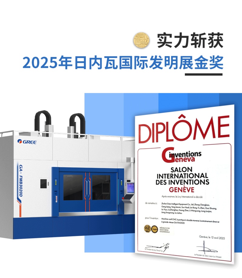 ![]() 为满足不同尺寸大小、各类应用场景的轻金属合金压铸件的精密加工需求,珠海格力智能装备有限公司(简称“格力智能装备”)推出高速双五轴龙门加工中心、高速高精卧式加工中心、钻攻机等多款CNC机加工装备。 高速双五轴龙门加工中心 格力高速双五轴龙门加工中心 GA-FMB3020D,专为汽车轻量化一体化压铸而打造,可实现一次装夹六面加工的一站式解决方案。主要用于前机舱、后底板、电池托盘等大型一体化压铸新能源汽车零部件的精密机加工。该机型还在 2025 年斩获日内瓦国际发明展金奖。