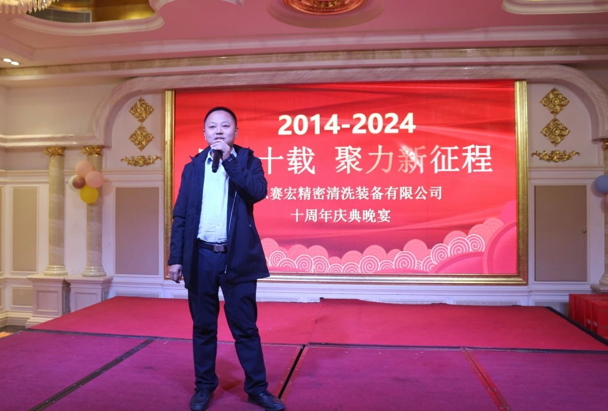 广东赛宏总经理余松先生致辞 庆典上,余松先生向与会嘉宾及公司全体员工表示热烈的欢迎和诚挚的感谢。他指出,过去的十年是广东赛宏百折不挠、勇往直前的十年。从一家名不见经传的小公司,成长为清洗装备行业中的国家级高新技术企业,广东赛宏的员工队伍不断壮大,市场范围也不断拓展。