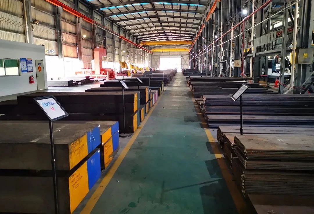 广东天佳誉特殊钢仓储中心 今年8月,天工国际大手笔投资和进军“一体化压铸模具钢材料”领域,在既有4500T大型压机基础上,引进行业领先的7000T超大型压机。可锻造厚度1米以内宽度1.5-1.6米的大模块和直径1.2米的大圆钢,已经具备可满足汽车轻量化核心结构件一体化压铸件集成对模具材料质量及规格定制化的要求。 黄健先生介绍补充说,天工国际配置了完善且先进的生产装备,除了4500T、7000T压机外,还有EF电弧炉、AOD精炼炉、LF炉外精炼系统、VD真空精炼炉、气体保护浇铸系统、850/910轧机机组另外天工还装备了美国康萨克保护气氛电渣炉8台(7吨-30吨)以及奥地利精锻机组多台(750吨-1300吨),保证模具钢的制造能力和产品品质。与此同时,还配备齐全各类国际领先的检测设备。