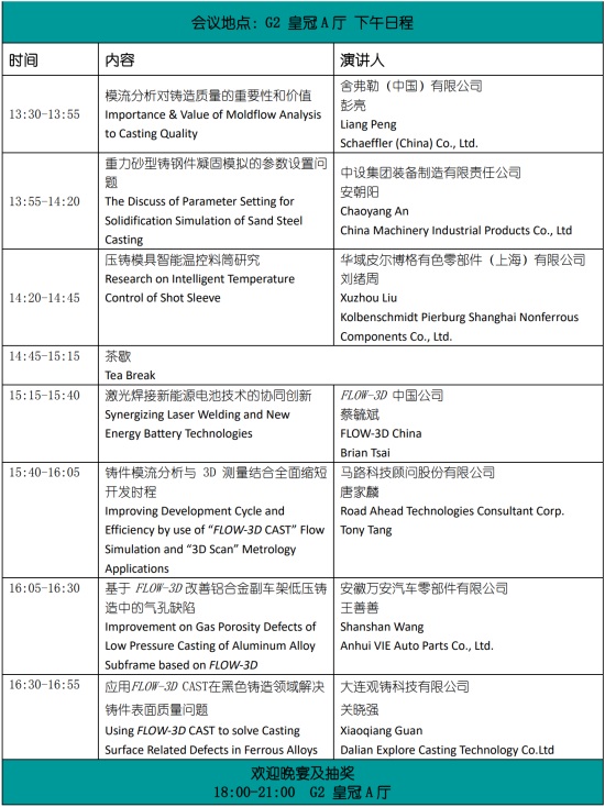 扫描二维码报名,免费参会 FLOW-3D CAST用户大会议程 如下: