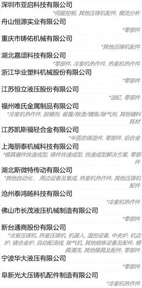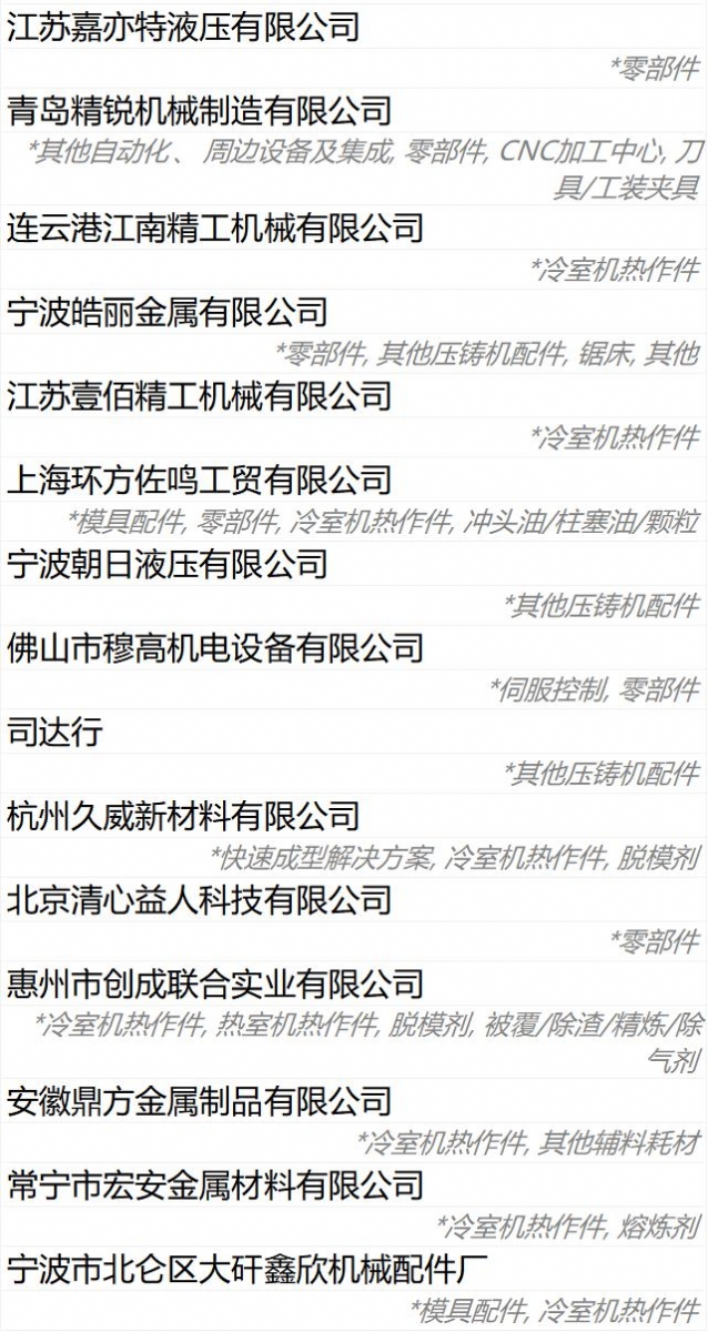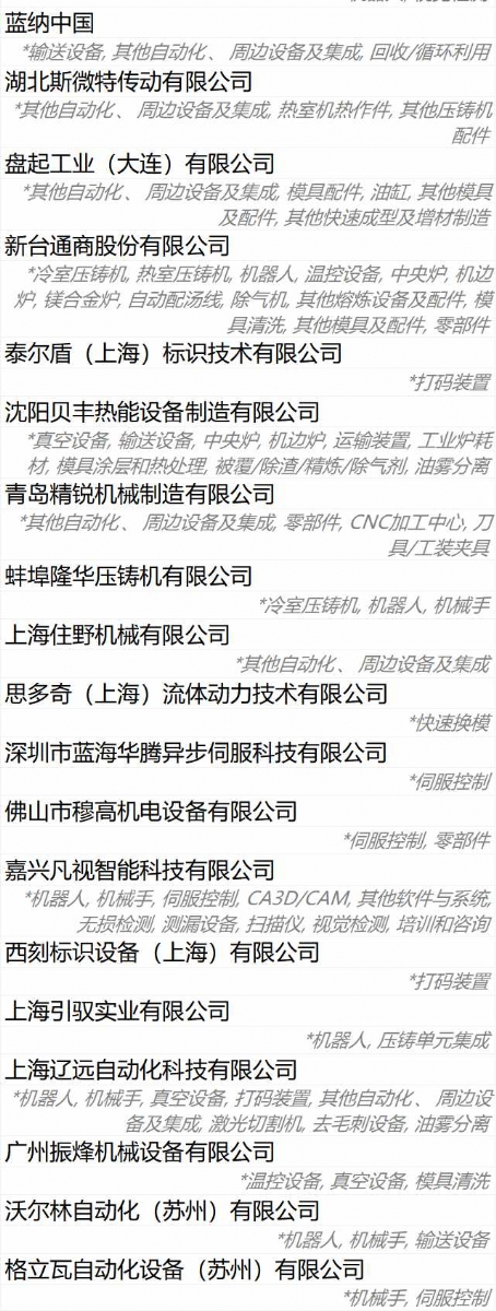 随着展位预定工作的持续推进,80%展商已确定参展,展商阵容正逐步成型。 压铸机