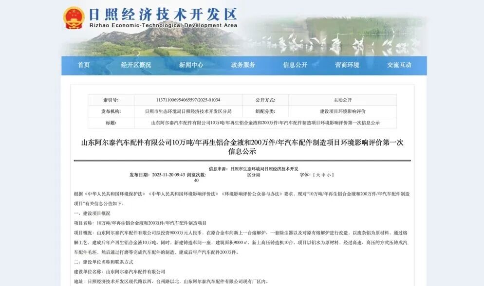 图源:德赢轻量化技术 在托尔斯兰达工厂的独立车间内,一台 8400 吨的巨型压铸机格外引人注目,它正全力塑造着新款 EX60 的“骨架”——车身后底板。这一工艺实现了突破,将原本约一百个钣金部件整合为一个单一铸造底板结构,改变了传统车身制造模式。 托尔斯兰达工厂作为沃尔沃全球生产网络中首家采用一体化压铸技术的工厂,肩负着为下一代汽车做准备的重任。目前,团队专注于 EX60 的生产,但模块化设计为未来生产其他结构部件,如电池盒或横梁预留了空间。舒勒表示:“从工程技术角度看,这非常出色。只需发布新图纸,制造零件,就能直接投入生产。”不过,该工艺复杂程度极高,德鲁坦言:“如果这很容易,那么所有人都能做到。”每提高 1%的合格率,都需要压铸厂、模具制造厂和设备厂之间进行数周的协调。 广东鸿图:“一体化压铸”进入收获期,镁合金业务持续推进 11月25日,广东鸿图科技股份有限公司(以下简称“广东鸿图”)在广东肇庆金利工厂接待了机构投资者调研团队,双方就公司经营现状、战略布局等核心问题展开深入交流,全方位展现了公司在复杂市场环境下的稳健发展态势与前瞻性布局。今年前三季度,广东鸿图实现营业收入66.53亿元,同比增长18.71%,在市场竞争加剧的背景下,成功保持了业务规模的持续扩张。第三季度公司营收23.83亿元,同比增长21.05%;归母净利润9584.31万元,同比增长2.03%,且毛利率环比提升,这标志着下半年经营状况较上半年实现稳步回暖。 作为压铸行业资深企业,广东鸿图在一体化压铸领域的布局已进入收获期。目前公司已部署5台(套)超大型压铸机,其中广州工厂集中了16000t、12000t及两台7000t设备,肇庆金利工厂配备6800t设备,形成了覆盖新能源汽车前舱、后地板及全尺寸电池托盘等核心部件的生产能力。随着主机厂一体化压铸车型加速上量,广州工厂产能持续释放,成为公司今年收入增长的重要引擎。 新材料布局成为广东鸿图提升盈利水平的重要着力点。公司已组建专业团队推进镁合金业务,相关生产设备陆续投建,多款产品进入实验验证阶段。当前国内镁合金产能稀缺,市场处于卖方市场阶段,且其工艺技术难度高于铝合金,因此有望实现更高毛利率,为公司贡献新的利润增长点。 山东阿尔泰:加码再生铝及汽车配件压铸项目 近日,日照市生态环境局日照经济技术开发区分局发布环境影响评价第一次信息公示,山东阿尔泰汽车配件有限公司(下称“山东阿尔泰”)拟投资9000万元建设10万吨/年再生铝合金液及200万件/年汽车配件制造项目。这一动作距离其母公司天润工业技术股份有限公司(下称“天润工业”)完成核心股权收购仅两个月。