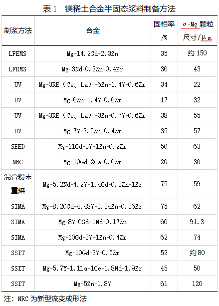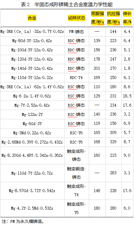 1、半固态成形镁稀土合金的成分设计和材料体系研究进展