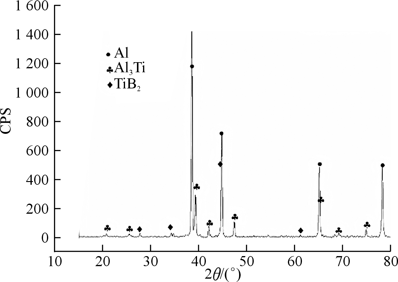 图3 Al-5Ti-1B中间合金的XRD图谱