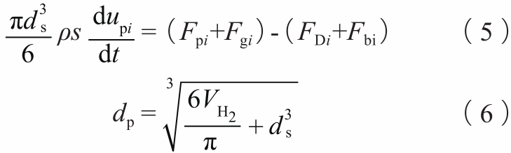 图2 渣气聚合长大原理图 在每一个时间步中,处于复合体作用域内的氢气泡、析出氢、渣粒及渣气复合体之间将触发聚合运算,且遵循大粒子吞并小粒子、复合体吞并渣粒和气泡的规则,最终形成一个体积更大的渣气复合体,同时每个复合体的作用域大小随复合体的直径及渣气比等动态变化。基于复合体的受力分析,复合体的运动控制方程如下: