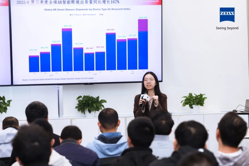 ![]() 2025年12月26日,东莞——全球工业质量解决方案领导者蔡司与富士康集团旗下之优尔鸿信检测技术有限公司联合举办的“AI智能终端检测创新论坛”在蔡司东莞质量卓越中心(QEC)圆满召开。本次活动聚焦AI智能终端检测技术的前沿趋势与行业痛点,通过AI智能终端行业趋势分享、蔡司质量解决方案演示、优尔鸿信的案例分享以及产业链伙伴的深度交流,全面展示了蔡司工业质量解决方案如何通过创新技术优势,为AI智能终端制造从设计、量产到失效分析的全流程提供全产品线支持。蔡司与优尔鸿信亦将持续探索未来消费电子新趋势,共同把握质量、定义质量,协作迈向下一里程碑。 AI终端普及催生检测新挑战 随着AI算力需求呈指数级增长,智能终端设备正迎来全面爆发。据行业数据预测,2025年中国智能算力需求规模已突破788EFLOPS(即每秒788百亿亿次浮点运算),行业级智能算力需求年内将超1000EFLOPS(即每秒1000百亿亿次浮点运算),端侧算力年均增速达35%。AI眼镜、智能手表、耳机等可穿戴设备迅速普及,但其微型化、高集成度、高功耗的特性对检测精度提出了极高要求。例如,AI眼镜的光栅宽度、周期深度等微纳级参数检测,穿戴式体征监测传感器对制程缺陷之敏感化、智能手表主板翘曲度的动态分析,均需突破传统测量技术的局限。