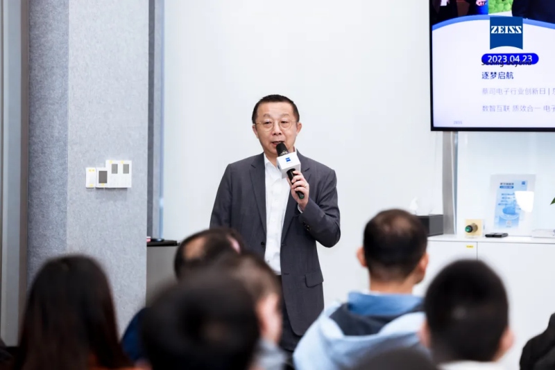 我们将 AI 作为核心转型战略,以算力基础设施为基础,拓展 AI 服务器制造与算力应用落地能力,依托全球生产基地与垂直整合优势,支撑大模型训练与应用部署需求。 在智能制造层面,融合 AI 质检技术与高精度检测能力,构建全流程智能检测体系,强化缺陷识别、尺寸校验与工艺优化,以数据驱动提升生产效率与良率,夯实 AI 智造核心竞争力。 在消费端与产业端,我们持续布局智能穿戴、机器人、智能驾驶等多元应用场景,通过技术协同与生态共建深化场景落地,双方的长期合作为全链条产品的可靠性与规模化发展提供坚实支撑。 技术实景展示:从方案到应用 论坛议程紧密围绕AI智能终端产业链的失效分析等检测需求展开,在技术分享环节,蔡司技术专家分享了AI智能终端的质量解决方案,涵盖AI眼镜、AI手表、AI耳机、AI手机,以及AI服务器等最新应用检测需求。优尔鸿信及相关供应链企业则介绍了AI智能终端领域的前瞻布局经验和供应链中关键产品的品控实践与挑战。 在蔡司东莞质量卓越中心的参观环节中,参会者实地观摩了在电子领域不同应用场景下的质量检测实操演示。通过蔡司FIB-SEM(聚焦离子束扫描电镜)、金相显微镜(Axio Scope5)、三坐标测量机(ZEISS PRISMO系列、ZEISS SPECTRUM系列、ZEISS CONTURA系列)、工业CT(ZEISS METROTOM系列)、以及三维扫描仪(ZEISS ATOS Q)等设备的动态运行,以及软硬件模块化灵活配置的生动演绎,直观了解在面对AI眼镜、智能手表、耳机等可穿戴设备的精密微型化的极致挑战下,蔡司尖端技术为微型传感器、紧凑光学镜头及复杂内部结构提供无损检测和精密测量的关键保障,以创新质量方案驱动新一代AI硬件的研发与智造升级。