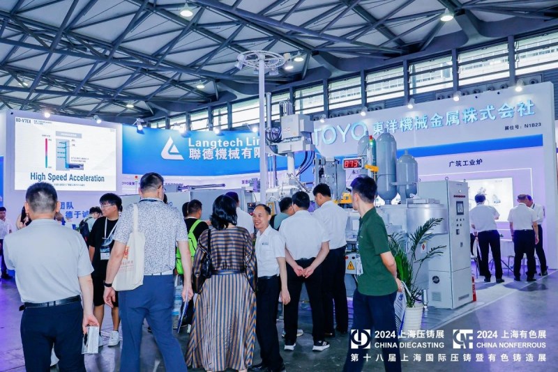 ![]() 2024年7月10-12日,第十八届上海国际压铸暨有色铸造展在上海新国际博览中心成功举办。本届展会以“新能源汽车发展构建压铸全球化新格局”为主题,展出面积3.69万平方米,吸引了470余家参展单位,来自全球60+国家及地区的有色、压铸行业及相关应用领域专业观众莅临参观。 联德机械有限公司作为东洋TOYO品牌压铸机在中国的主要代理商,与东洋机械金属株式会社联合参加了“2024上海国际压铸展”,并在现场展示了一台东洋TOYO最新款的BD-500V7EX冷室压铸机。 据了解,V系列是东洋TOYO的主力机型,是一款广受好评的压铸机,凝聚了长达半个世纪的技术积淀。而BD-V7EX则是V系列中的高端机型,其高速加速度高达100G,并配置了全新的控制系统,是一款能够应对近年来多样化发展的压铸方式以及各种产品的铸造要求的高性能压铸机。