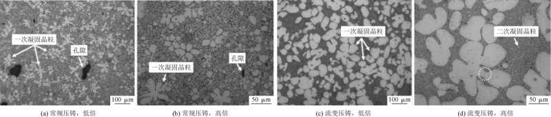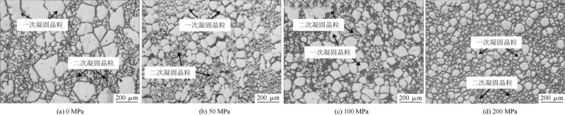 图14 流变挤压铸造试样在不同压力下的显微组织