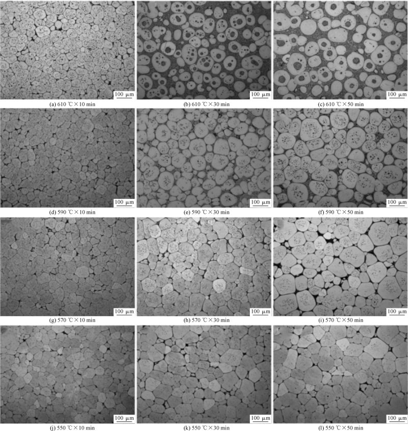 图7 Mg-10Gd-3Y-1Zn-0.4Zr合金的半固态组织随等温温度和等温时间的变化