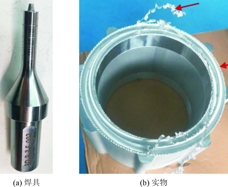 图4 动轴肩焊具和焊缝实物图