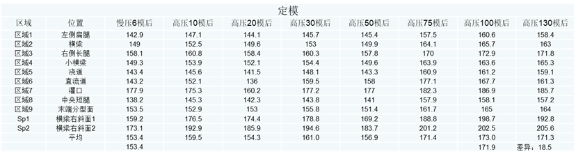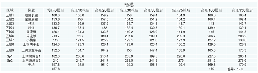 以上都是取的喷涂后的模温: 慢压6模后的模温和100模后的模温对比差异约18.5度 高压件动模侧温度趋势