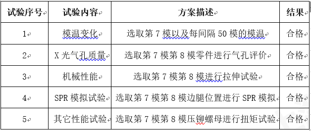 连续两个班次的试验件SPR结果正常,未出现异常开裂等问题 ⑤性能试验