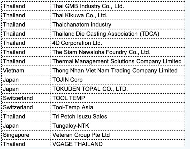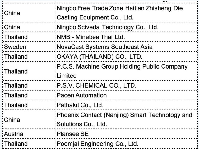 参加理由 崛起的市场,连接全球,重塑格局 新兴枢纽,战略支点,驱动东南亚产业转型升级 顶级专业平台:打造东南亚压铸行业顶级会展平台,汇聚全球前沿技术、优质资源与行业领袖,构建高效交流与合作生态。 全域辐射网络:立足泰国产业枢纽,辐射东南亚核心经济体,深度链接"一带一路"沿线、日韩、中国港澳台等关键市场,驱动区域协同发展,重塑市场格局。 整合资源,赋能增长:紧扣压铸行业全球化整合趋势,应对供应链重构需求,依托东南亚产业基础与泰国地缘优势,整合资源,助力企业深耕本地、布局未来。