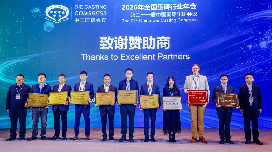 武汉不仅是我国重要的汽车产业基地,更是长江中游压铸产业的创新高地。依托雄厚的产业根基与强劲的科创活力,为本次年会搭建起产学研深度融合的高效交流平台。在年会开幕式上,主办方为支持单位举行了隆重的致谢颁奖仪式,衷心感谢各单位的鼎力支持。由娄延春理事长为其颁奖。诚挚感谢各方对行业发展的坚定支持与卓越贡献,共筑压铸产业高质量发展新未来!