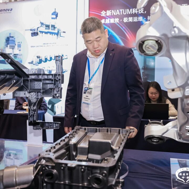 两项“首发”成为全场焦点。诺玛科(Nemak)镁合金导油壳体首次在国内揭开面纱;江苏凯斯福亦携全球首款低压铝合金一体化前机舱首次亮相。展台前,参会代表纷纷驻足,触摸、观察、探讨工艺实现的每一个细节。