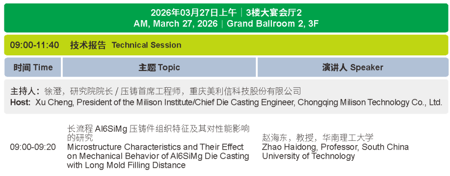 大会报告 & 四大论坛 解码“铝/镁”未来 在全球碳中和的宏大叙事下,轻量化不再是选择题,而是必答题。“铝”以其成熟的稳,支撑着大型一体化的结构革命;“镁”以其潜在的轻,叩开着下一代材料应用的大门。今日,全球智慧在此碰撞,探寻“稳”与“新”的最优解。 大会报告:把脉行业方向 上午的大会报告环节,5位行业专家带来精彩分享,围绕材料创新、一体化压铸、数字化智造及工艺细节优化等前沿方向,多维度解读压铸产业的技术突破与应用实践。