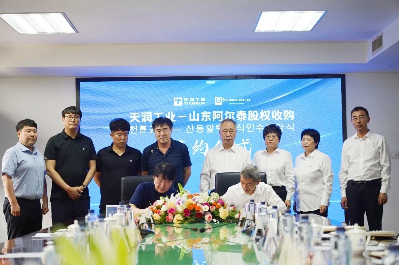7月22日,天润工业与山东阿尔泰举行股权收购签约仪式。图源:天润工业 在汽车配件制造板块,将新建一座建筑面积达9000平方米的压铸车间,配备10台高压压铸机,以自产铝水为原料,经高压压铸、打磨等工序,形成年产200万件汽车配件的产能。 作为此次项目的实施主体,山东阿尔泰的企业背景近期发生显著变化。资料显示,该公司成立于2013年6月,注册资本18607.28万元,原来韩资背景,现为天润工业控股子公司。今年7月,天润工业审议通过收购议案,同意以1.35亿元自有资金收购山东阿尔泰100%股权,并与相关方签署股权转让协议。9月,该笔交易完成首次股权交割,天润工业已持有山东阿尔泰95%股权,江苏东西发动机配件有限公司持有剩余5%股权。 此次加码再生铝及汽车配件业务,与母公司天润工业的产业布局形成互补。公开信息显示,成立于1995年12月的天润工业,总部位于山东省威海市文登区,是以“天”牌内燃机曲轴、连杆为核心产品的大型综合性产业集团,业务涵盖内燃机动力零部件、工装模具制造、自动化智能化装备、整车空气悬架等多个领域,2009年8月登陆资本市场,目前下设潍坊天润曲轴、文登恒润锻造、天润曲轴德国有限公司等7家子公司。