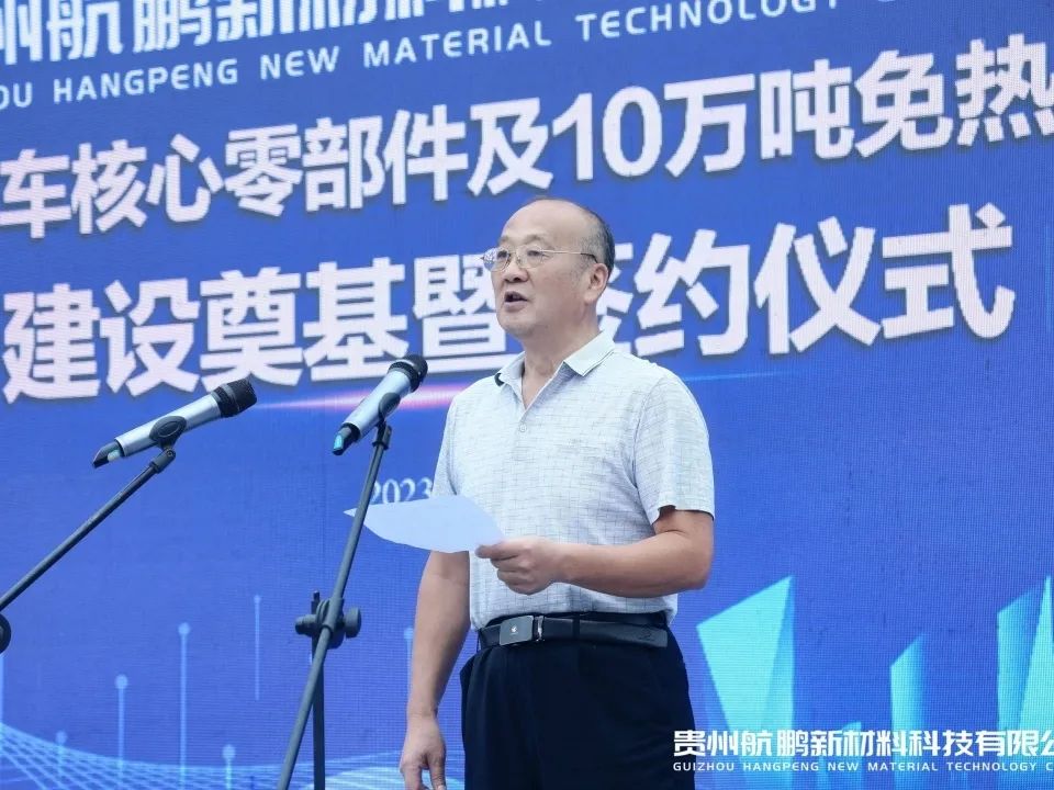 ![]() 2023年6月21日上午,贵州航鹏新材料科技公司(下称“贵州航鹏”)“20万套新能源汽车零部件及10万吨免热处理新材料项目建设”奠基暨签约仪式,在贵州省遵义市播州区隆重举行。来自遵义市政府、播州区政府、行业协会、高校的领导,合作伙伴及客户代表,贵州航鹏公司高层,金融证券公司代表以及专业媒体记者等嘉宾共同见证了此次开工庆典。
