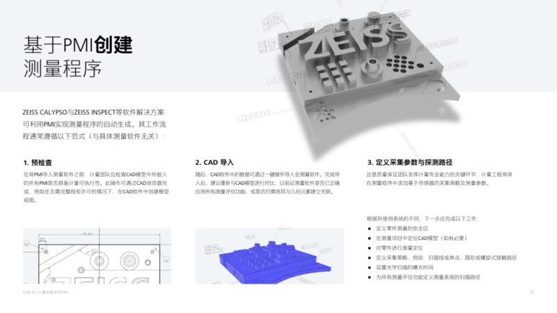 ![]() 你是否还在为以下问题困扰? 图纸与实际测量脱节,沟通成本高? 质量检测流程繁琐,效率难以提升? 零件公差难以标准化,返工率高? 别担心,蔡司为你准备了两份实用白皮书——《几何尺寸和公差(GD&T)》《计量实践中的PMI》,为您系统梳理国际主流的GD&T/PMI标准与最佳实践,助力企业实现从设计到制造、检测的全流程数字化升级。 《计量实践中的PMI》 深入讲解如何将产品制造信息(PMI)集成到CAD模型,实现无纸化、自动化的质量检测流程。内容覆盖PMI与GD&T的集成方法、测量软件自动化、常见技术难点与解决方案,助力企业迈向智能制造新阶段。 如何在CAD模型中嵌入完整的制造信息(PMI)? 如何通过PMI驱动测量软件自动生成测量程序? 如何避免信息丢失、提高数据一致性?