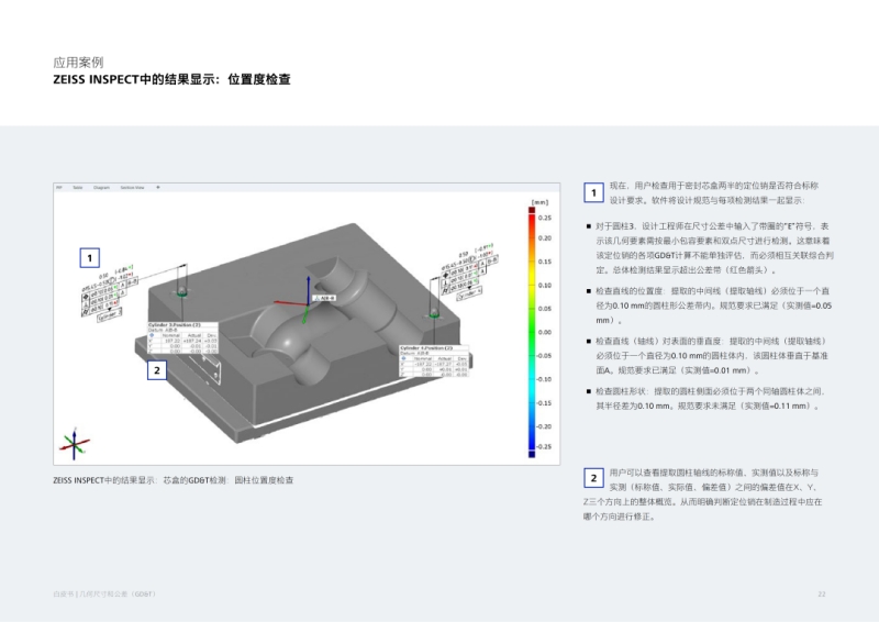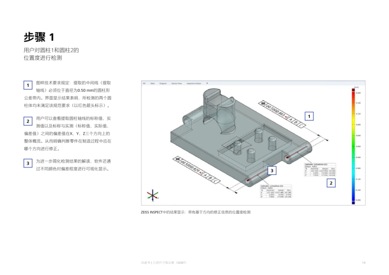 《几何尺寸与公差(GD&T)白皮书》 详细解析GD&T在产品设计、制造与检测中的应用价值,帮助企业实现高效装配、降低次品率、提升互换性。涵盖ISO GPS与ASME Y14.5两大国际标准体系,配合丰富的实际案例与图示,理论与实操兼备。 深入解析GD&T的分类、标注原则与应用场景; 对比ISO与ASME标准体系,助你规范标注; 实例讲解如何在ZEISS INSPECT中进行GD&T分析。