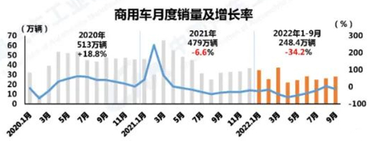 商用车产销环比增长 9月,商用车产销分别完成26.3万辆和27.9万辆,环比分别增长10.5%和7.9%,同比分别下降15.6%和12.5%。1-9月,商用车产销分别完成242.6万辆和248.4万辆,同比分别下降32.6%和34.2%。降幅较1-8月收窄1.5个百分点和2个百分点。