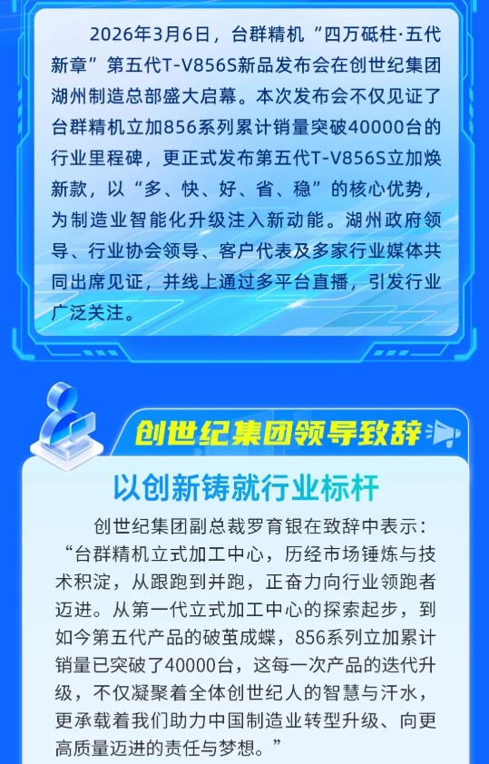 销量破4万台!台群精机第五代T-V856S立式加工中心全新上市