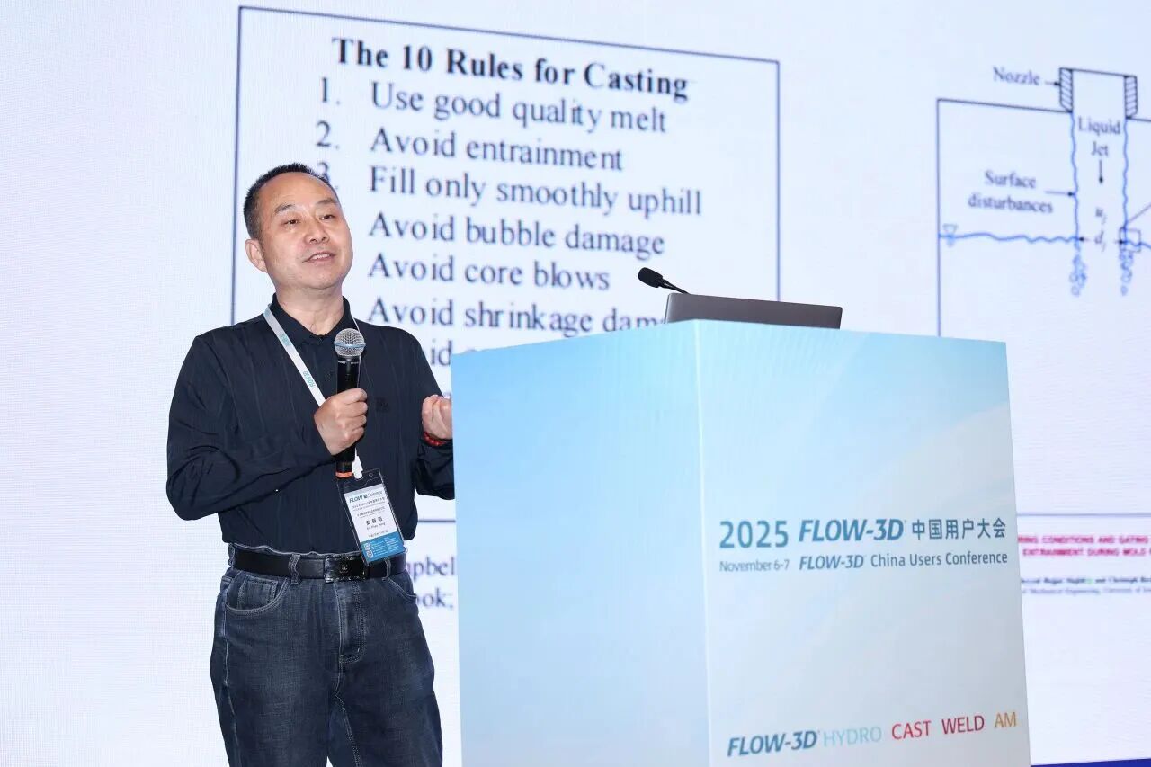FLOW-3D 中国总经理苏嘉宏先生 在本届大会上,多家用户企业的技术专家深入分享了FLOW-3D CAST在黑色金属铸造与有色金属铸造领域的前沿技术成果与最新应用案例,充分展现了该软件在提升铸造工艺优化水平与质量控制能力方面的强大优势。与此同时,FLOW-3D 中国技术团队重点介绍了FLOW-3D CAST的最新版本功能及其在半固态成形模拟中的创新应用,为行业客户带来了更高效、精准的解决方案。 大会演讲环节亮点纷呈,具体报告如下: