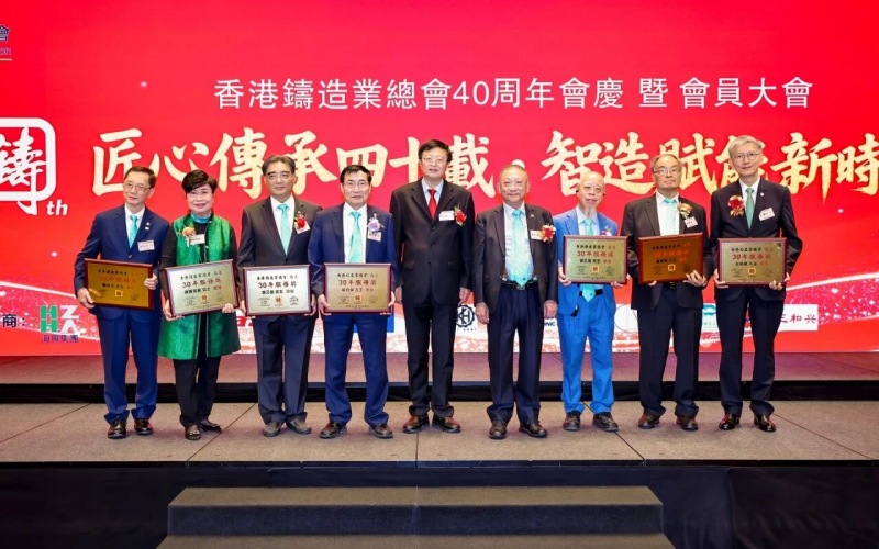 ![]() 匠心傳承四十载·智造賦能新時代 冬韵悠扬,礼赞华章。2025年11月11日下午,香港铸造业总会40周年会庆暨2025年度会员大会于香港丽晶酒店盛大举行。这一盛会,既见证了香港铸造业总会四十载栉风沐雨、砥砺奋进的辉煌历程,更凝聚起全体会员携手并肩、共绘行业未来蓝图的磅礴力量。 香港铸造业总会会长梁诗雅女士及总会理事会领导架构成员,香港商务及经济发展局副局长陈百里博士,中央人民政府驻香港特别行政区联络办公室经济部副部长兼贸易处负责人周强先生,亚洲铸造业联合会主席、中国机械工业联合会副会长、中国铸造协会会长张立波先生,以及香港铸造业总会会员企业代表、来自全国各省市铸造行业协会/学会领导、专业媒体记者等400余名嘉宾齐聚一堂,共同见证这一重要时刻。 会员大会:总结过往,展望新程 当日下午17:00,会员大会在庄严的国歌声中拉开帷幕,现场氛围庄重有序。梁诗雅会长率先登台,作全面汇报总会全年会务工作及未来展望。她指出,过去一年,总会举办及参与各类行业活动达34场,活动内容涵盖技术交流、市场拓展、人才培育等多个领域,成功搭建起多元交流平台,促进了会员企业间的联动与合作。同时,总会积极拓展国际市场,为会员企业提供更多发展机遇。
