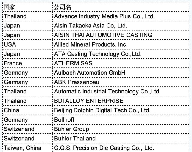 参加理由 崛起的市场,连接全球,重塑格局 新兴枢纽,战略支点,驱动东南亚产业转型升级 顶级专业平台:打造东南亚压铸行业顶级会展平台,汇聚全球前沿技术、优质资源与行业领袖,构建高效交流与合作生态。 全域辐射网络:立足泰国产业枢纽,辐射东南亚核心经济体,深度链接"一带一路"沿线、日韩、中国港澳台等关键市场,驱动区域协同发展,重塑市场格局。 整合资源,赋能增长:紧扣压铸行业全球化整合趋势,应对供应链重构需求,依托东南亚产业基础与泰国地缘优势,整合资源,助力企业深耕本地、布局未来。