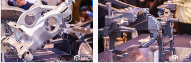 两项“首发”成为全场焦点。诺玛科(Nemak)镁合金导油壳体首次在国内揭开面纱;江苏凯斯福亦携全球首款低压铝合金一体化前机舱首次亮相。展台前,参会代表纷纷驻足,触摸、观察、探讨工艺实现的每一个细节。