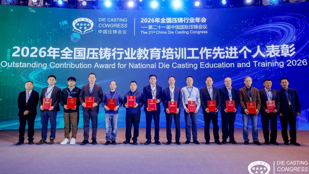 刘鸿超秘书长 深耕人才培育,赋能行业发展 2026年全国压铸行业教育培训工作先进个人表彰仪式 行业的高质量发展,根植于人才的沃土。铸造行业生产力促进中心依照国家有关政策,以促进我国压铸人才成长和科学发展为宗旨,积极开展压铸工程师能力培养工作,目前已在江苏、浙江、重庆、广东、辽宁、福建、山东等地设立教育培训基地,已完成近 653 人次的培训及评价工作,系统性破解行业工程技术人员 “专业能力” 评价难题。这一系列成果的取得,离不开长期耕耘在行业教育一线的专家们。在年会开幕式上,FICMES副理事长、清华大学熊守美教授,上海交通大学党委常委/副校长曾小勤教授为参与此项工作先进个人颁发证书,予以表彰。