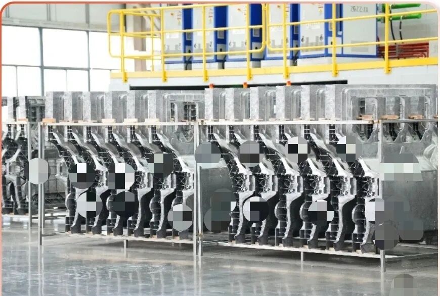 双五轴加工中心 公司核心装备为9000T 超大型智能压铸单元,可批量生产60–110kg 级后地板、前机舱、电池包壳体、下车体总成等大型铝结构件,实现零件高度集成、车身减重 10%–20%、生产效率大幅提升。公司配备 X 光无损探伤、三坐标测量、蓝光扫描、AI 智能检测等高端设备,通过IATF16949 汽车行业质量体系、ISO9001 质量管理体系认证,拥有各类专利 120 余项。