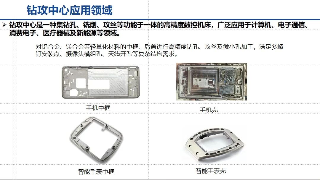 格力钻攻机 格力钻攻机是集钻孔、铣削、攻丝等功能于一体的高精度数控机床,广泛应用于计算机、电子通信、消费电子、医疗器械及新能源等领域,可对铝合金、镁合金等轻量化材料的中框、后盖开展高精度钻孔、攻丝及微小孔加工,能满足多螺钉安装点、摄像头模组孔、天线开孔等复杂结构的加工需求。